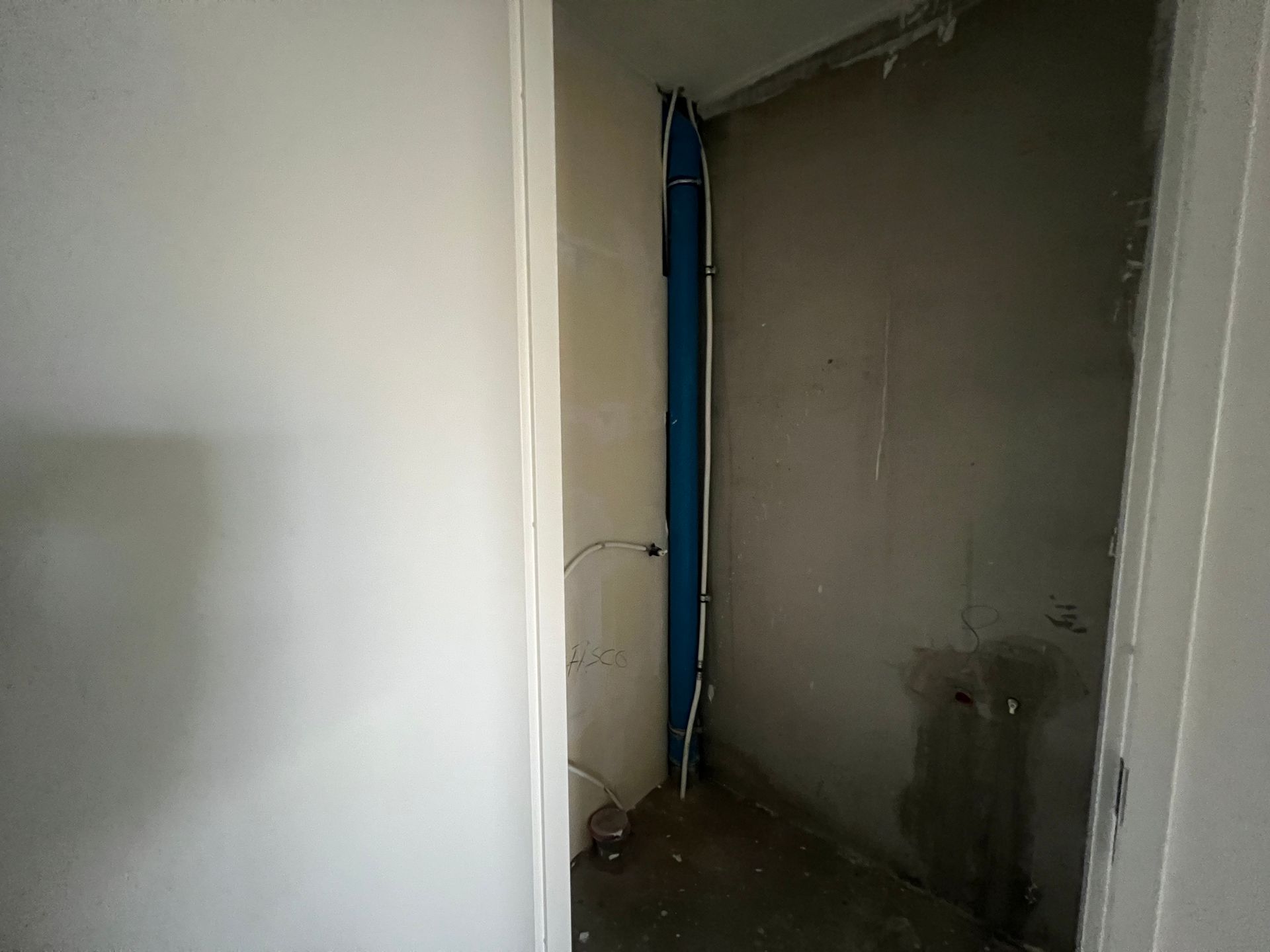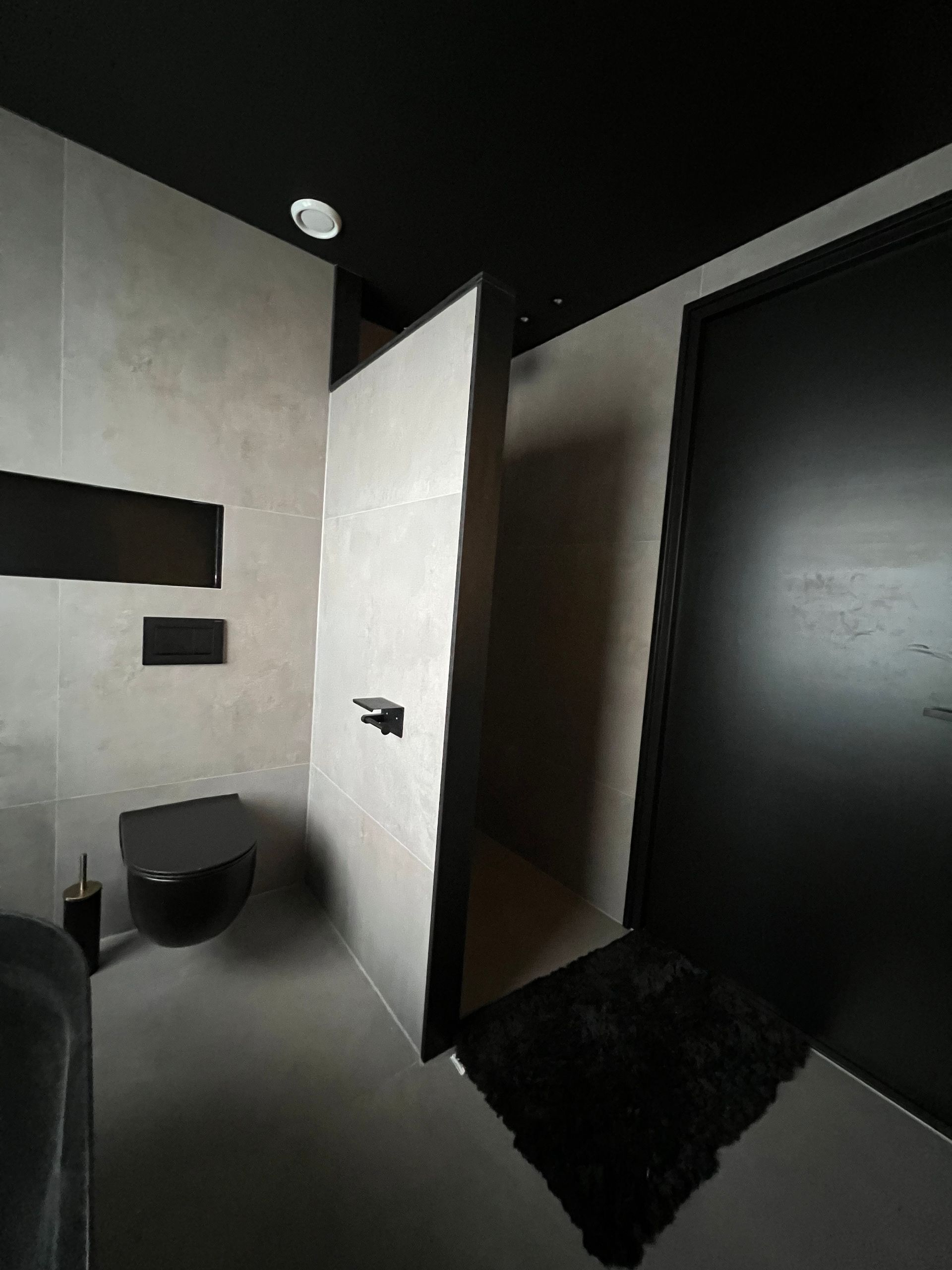 In deze badkamer hebben wij ook gelijk het plafond verlaagd, een douchemuur geplaatst, het leidingwerk aangelegd en de badkamer voorzien van stroom en vloerverwarming.