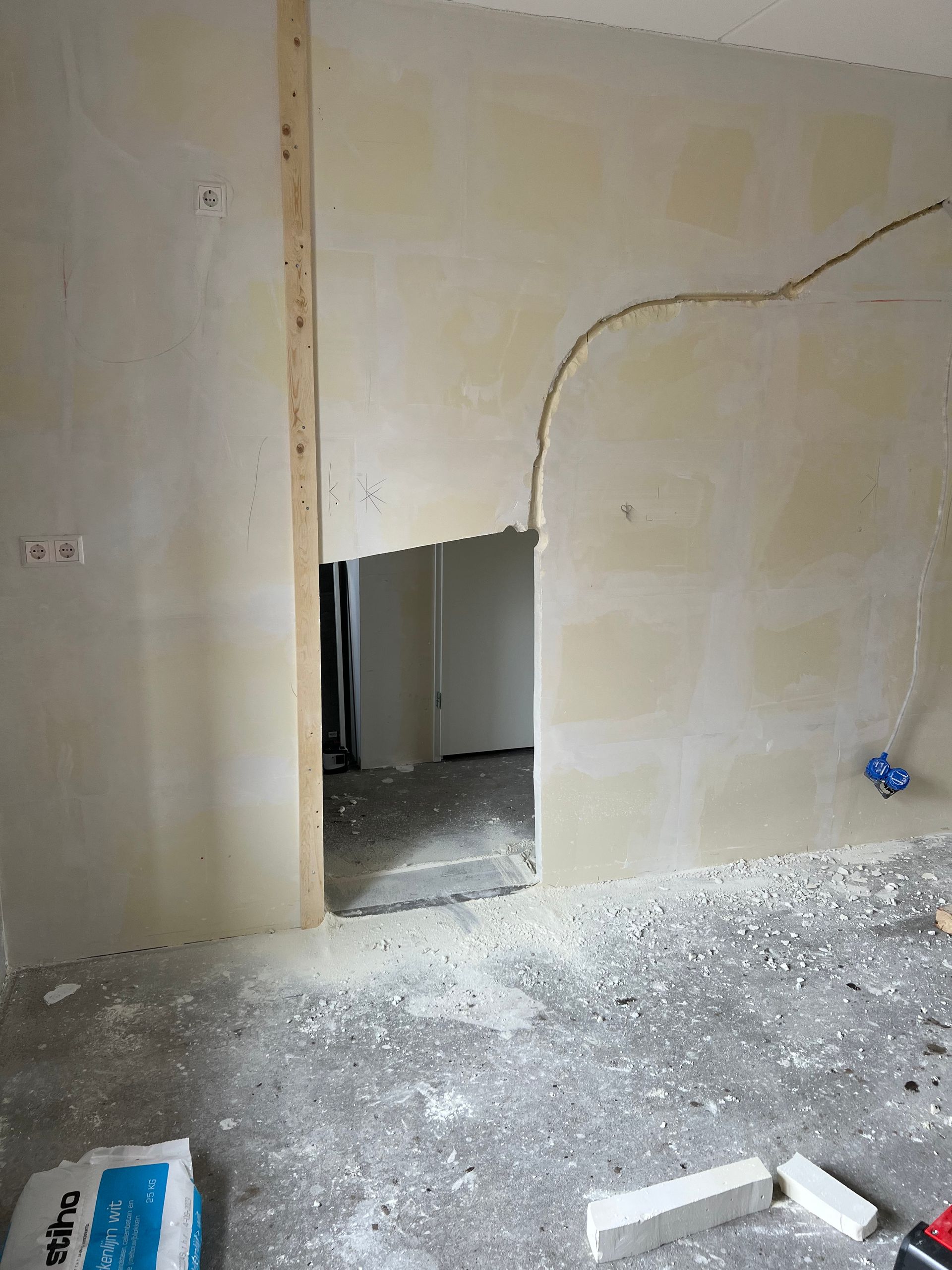 De uitsparing hebben we uitgezaagd en precies naar de juiste maten laten stucen. Vervolgens hebben wij de stalen deuren laten plaatsen.