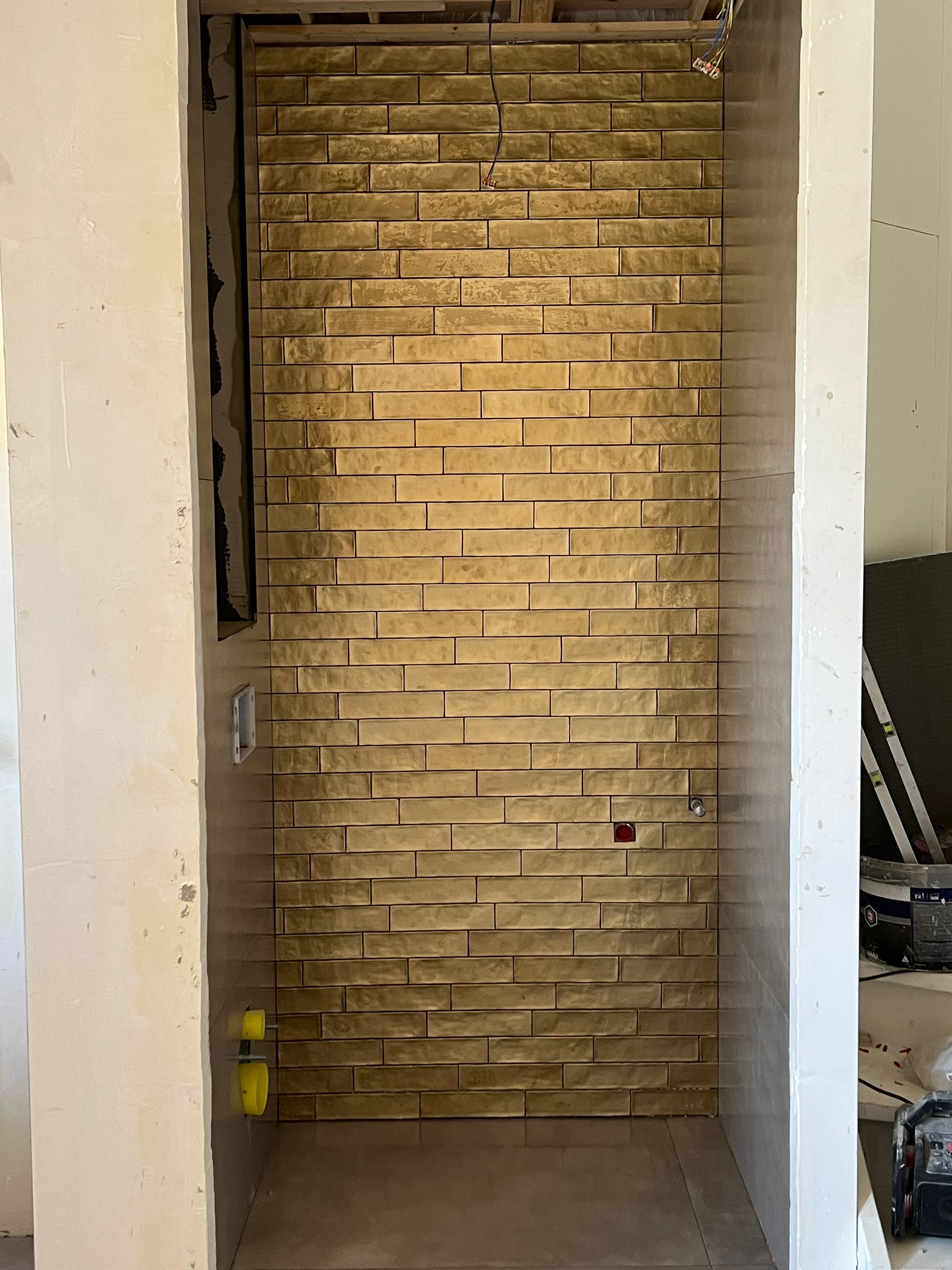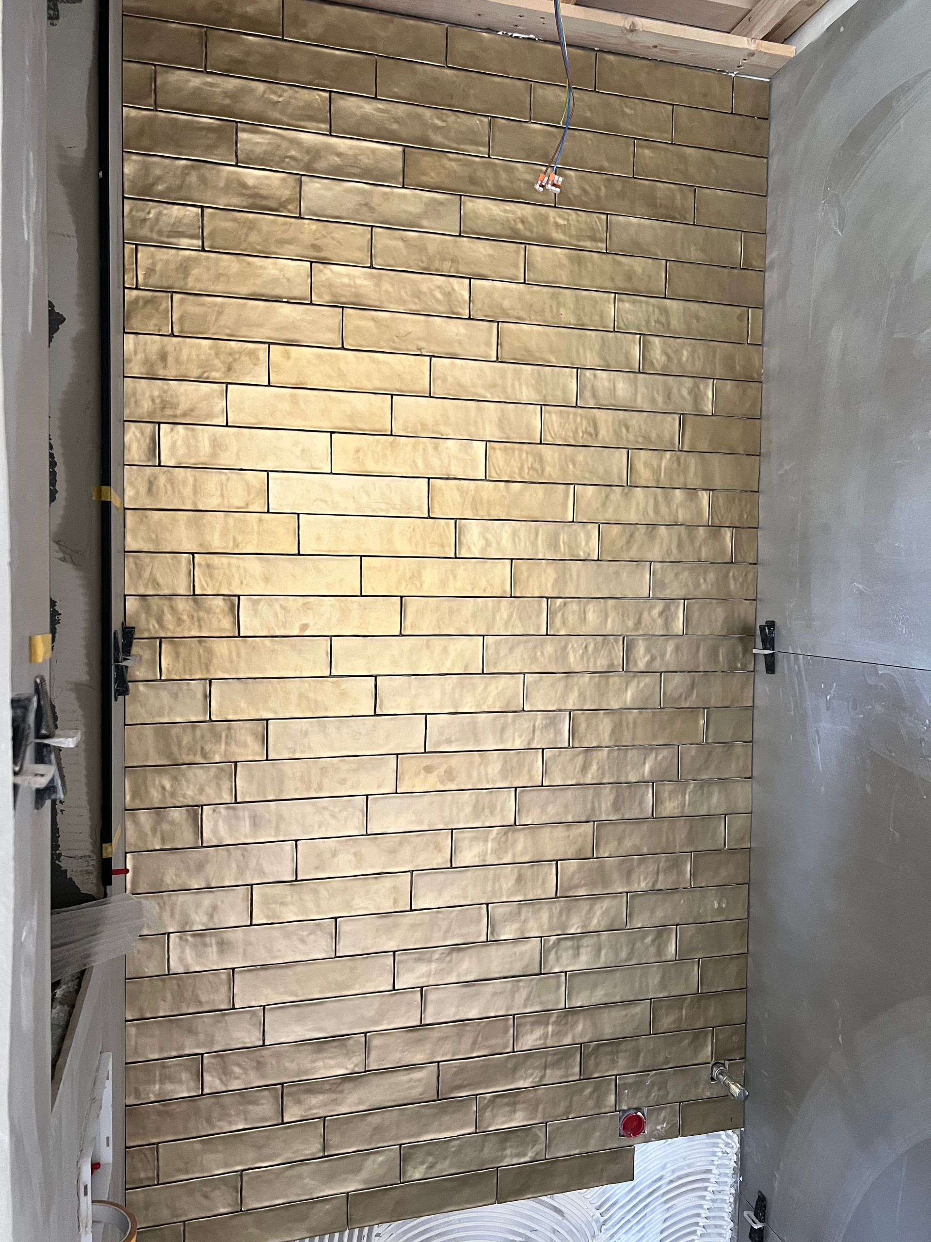 Op de wanden zijn ''100x'100'' tegels geplaatst met een kleine gouden tegel.