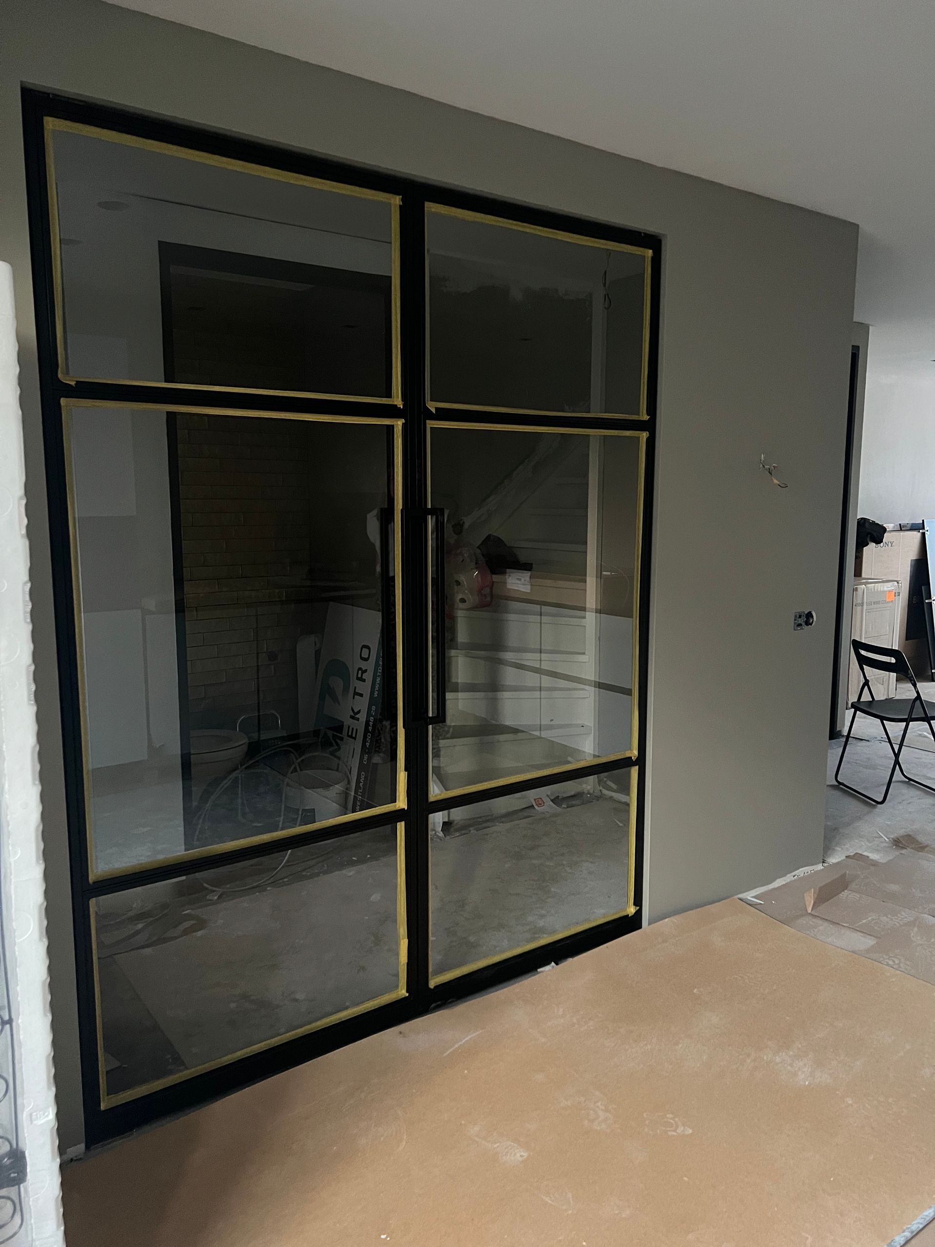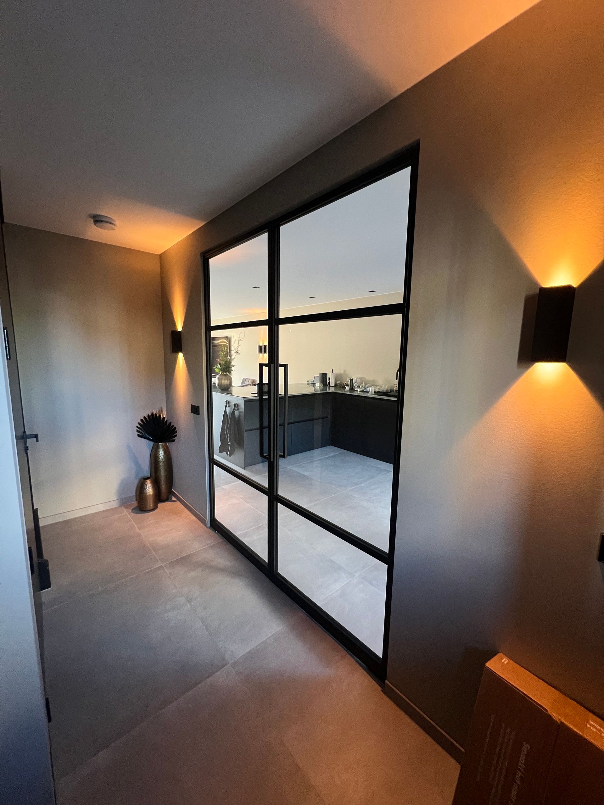 Stalen taatsdeuren hebben vaak een vaste maat, dit betekend dat de uitsparing in de muur precies op maat moet zijn. In deze woning hebben we de ingang van de woonkamer/keuken verplaats en vervangen voor dubbele taatsdeuren.