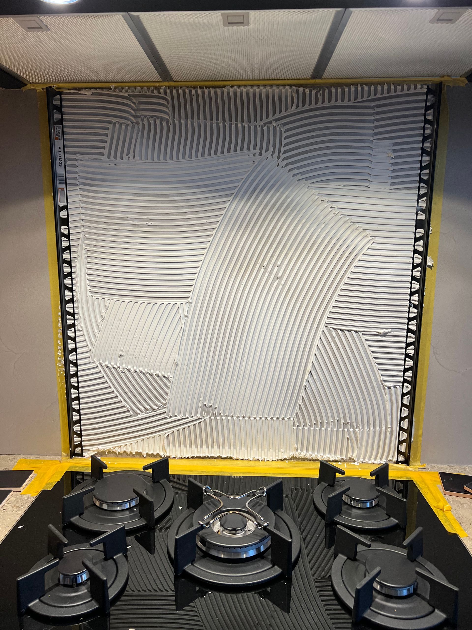 Vervolgens hebben wij de wanden en de vloer voorzien van ''100x100'' tegels.